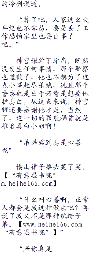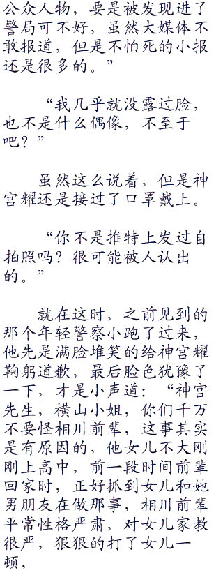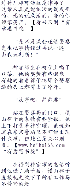 虽然这和自己没什么关系,他只是怀疑而把神宫耀请进警察局,并没有什么私心,但是为了这种小事就直接请律师,对这位警察而言也是个麻烦事。