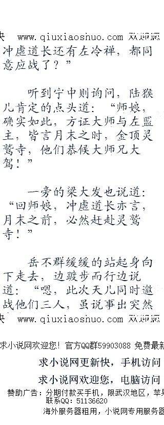 ;;;;半日后,武当山、灵鹫寺、嵩山派皆传出消息,应剑仙之邀,月底灵鹫,联手一战!