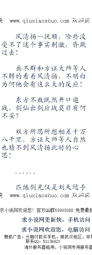 ;;;;华山之巅除了飘渺而至的霸道身影,也唯有那道突然一闪而逝的剑光,最为耀眼,也最为令人瞩目!