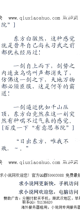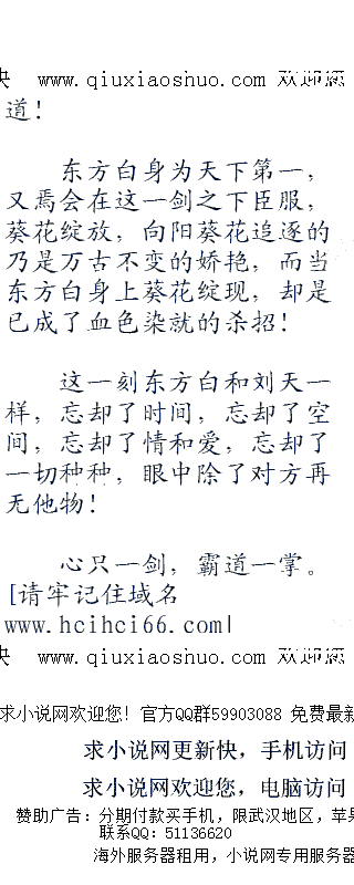 ;;;;就在东方白面色凝重下来之时,突然听到耳畔传来的刘天凝重话语!“这天外飞仙,除当日与风太师叔一战之外,你是第二个品尝此招之人,也是这个世界上最后一个值得我使出天外飞仙之人,请小心!”