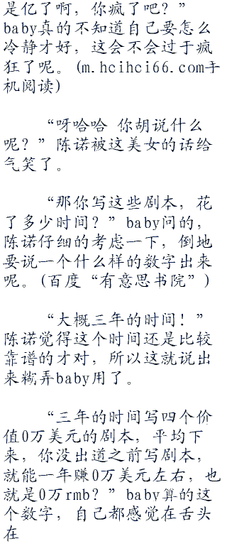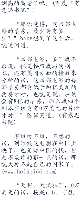 “什么?0万一个剧本,不是万而已吗?”baby听了这个后,十分的震惊,这一个电影剧本什么时候这么之前了。