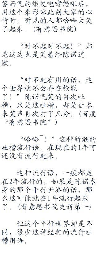 “啊哈哈~”陈诺恶搞的形容比喻,让大家不断的笑抽。
