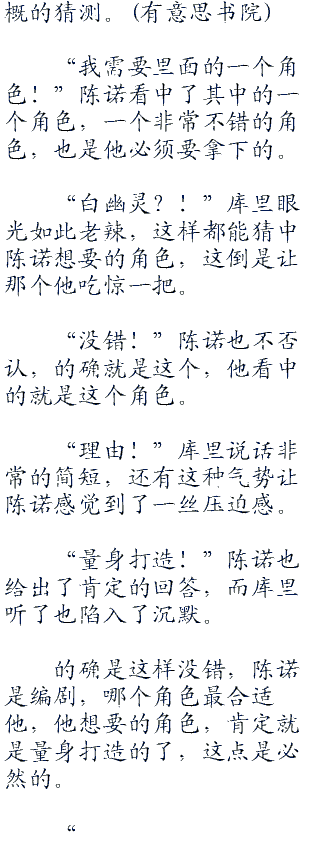 “这或许会是一个英明的决定也不一定!”大卫这样回答,也是表明了这个可以同意,让陈诺来出演。