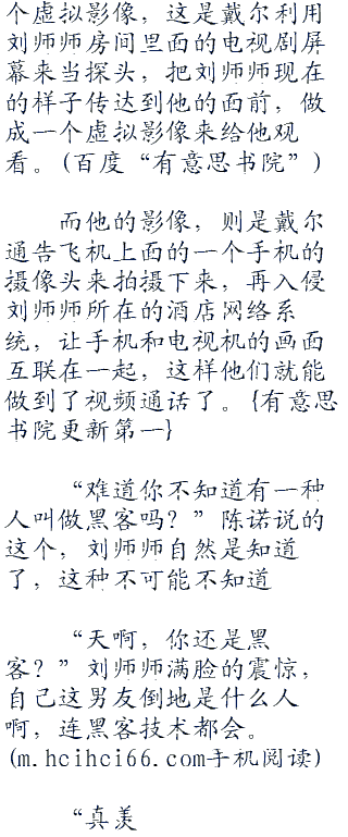 而陈诺则是让戴尔直接入侵刘师师的酒店房间,把自己和的影响传达到了刘师师房间里面的tv