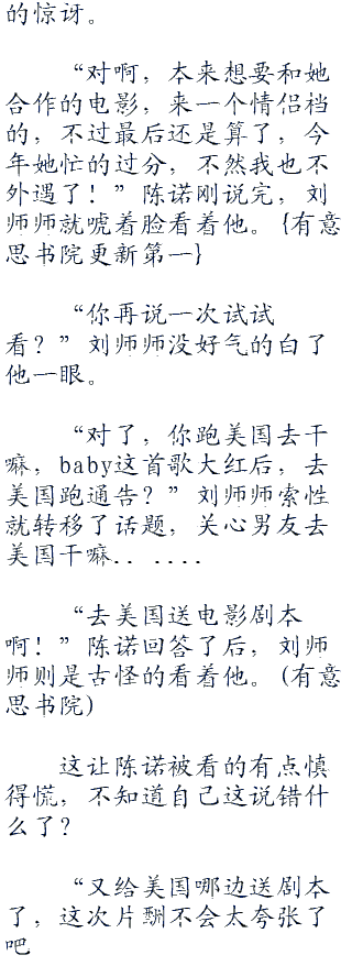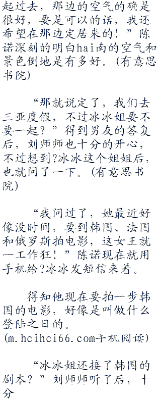 “那你倒是快点回来啊,和你异地恋很痛苦的!”刘师师是在hang州的横店影视城拍电影。