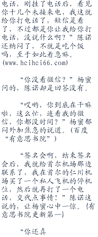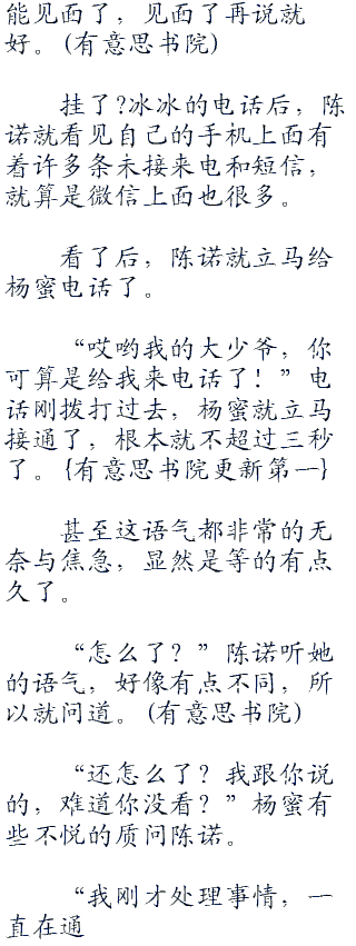 “知道啦,我挂了,要给蜜姐打电话了,不知道她要约我去哪里吃饭!”陈诺说的,?冰冰也知道,所以就没有再继续聊。