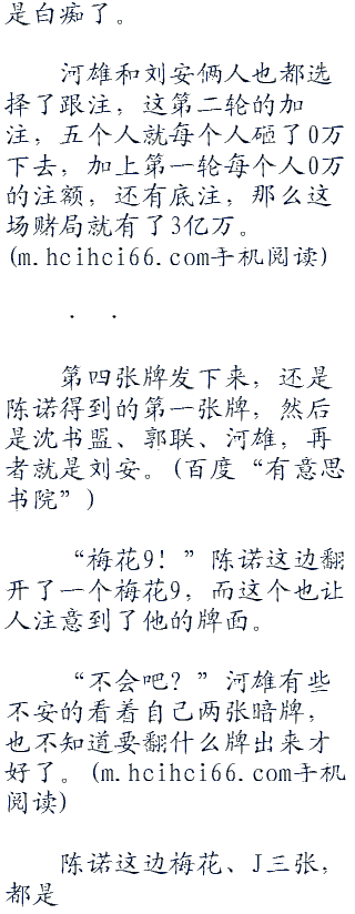 接下来的赢的是沈书盟,这少爷用一对j就吃下了三千多万,陈诺却是没有多说什么。