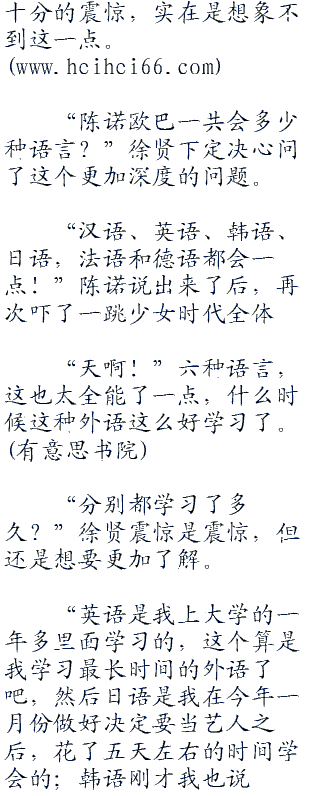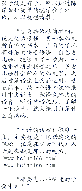 “什么?”当听到陈诺说学习韩语才半个月之后,少女时代全体惊讶