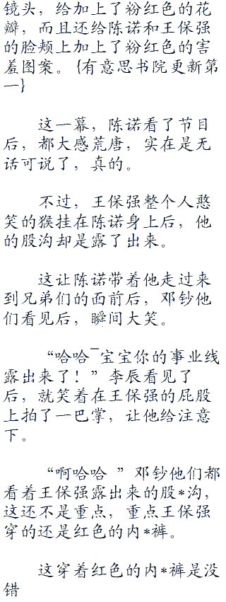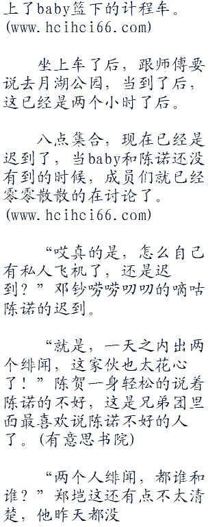 陈诺真正的用意是这个,而不是不想和baby一起出发,主要是他就穿了内*裤睡觉的,所以这要是掀开被子的话,那么baby尖叫说他耍流氓的话,这到时候要算谁的错?