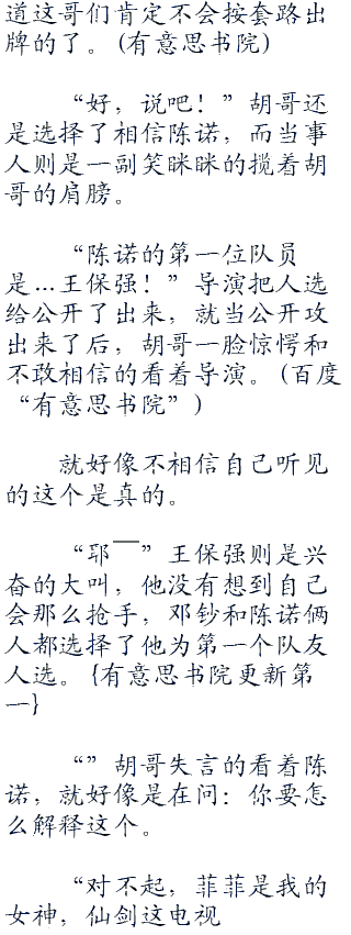 “好的,现在公开陈诺选择的第一位队员!”导演冷静下来了后,提醒大家注意听了。