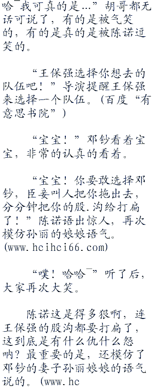“邓钞选择的第一位队员,是…”导演说着的时候,还停顿了一下,然后看着王保强道:“王保强!”