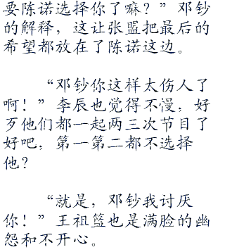 “到底选择了谁吖?”baby也挺好奇的,不知道陈诺和邓钞都选择了谁。