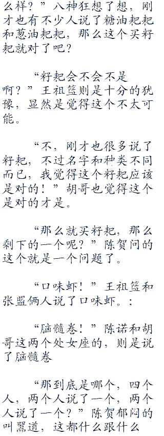 “你最喜欢的呢?”陈诺再次问道,而这个女生想了想,就说道:“哦,最喜欢的是脑髓卷!”