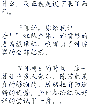 “挑战失败了后,用金币买回来的食物不能吃!”就在红队的要吃掉自己买回来的东西之前,导演的阻止,让他们更加的郁闷了。.