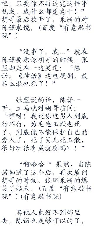 他陈诺到底是多恨李逍遥没有保护赵灵儿啊,都这么多年过去了,他还是没有能走过这道坎,甚至几次三番的拿这件事来调戏胡哥。
