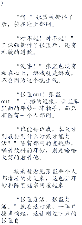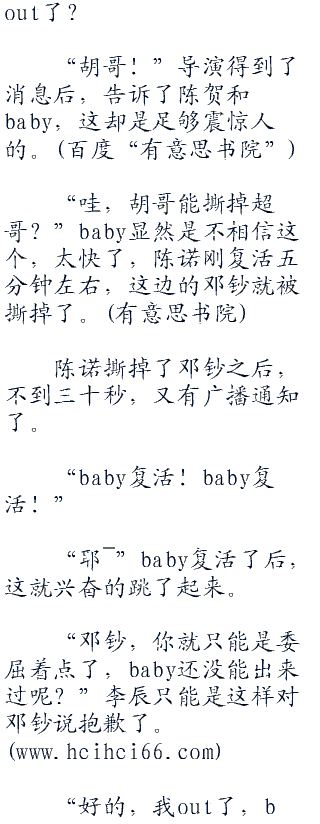 “邓钞out!邓钞out!”广播报告了邓钞out了后,在监狱里面的baby和陈贺都不敢相信