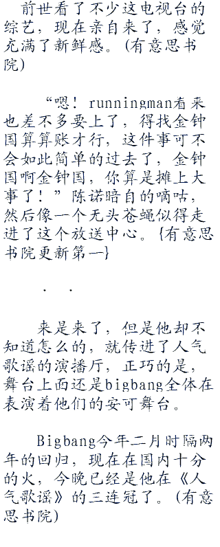 “怎么这时间还了在sbs的放送中心,今天是周日没错,可这《人气歌谣》的放松也都结束了吧?”陈诺对于这个还是知道一点的。