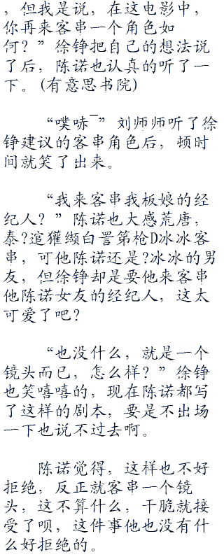 “哥们,这次电影有用到的吱个声!”在吃饭的时候,胡哥还非常够朋友跟陈诺说,要是电影需要到他的话,那么就说一声。手机阅读更方便m.
