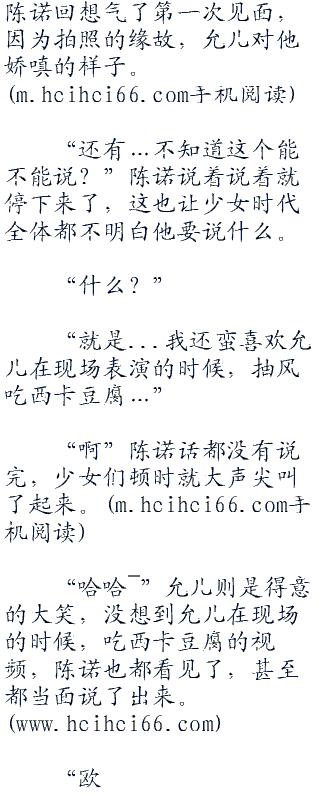 “喜欢她下意识之间吐出半节舌头的可爱俏皮!”陈诺说的这点,允儿听的开心之下,下意识的就吐出了半截舌头,真的非常可爱。