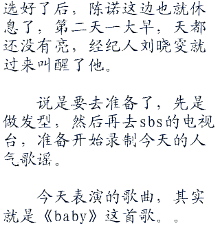 离开了mbc之后,陈诺就送允儿回宿舍了,之后他才转道回了酒店。