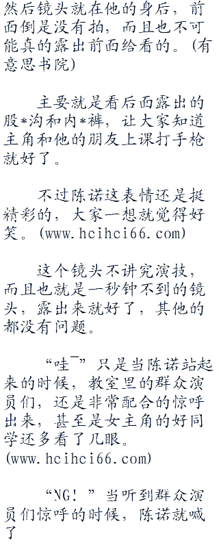 刚才演的就是上课打手枪这一段,只是有一个拉开拉链的镜头而已,其他的都没能看见,所以就拉了一个有趣的镜头。