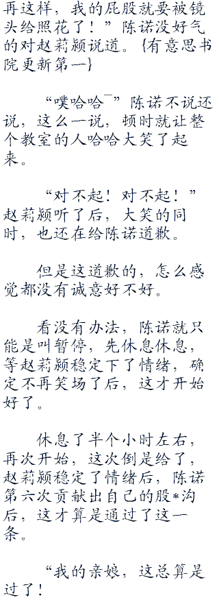不过这点陈诺给修改掉了,改成了穿着内裤就好,不过上课打手枪这里,还是必须要露出一点,就是正好能看见股*沟和内*裤就好了,其他的就没有什么。