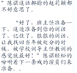 “导演看看过了吗?”整个剧组,不,应该说是整个教室里面的所有人,包括群众演员们所饰演的学生们,都笑看着许博淳的饰演者。