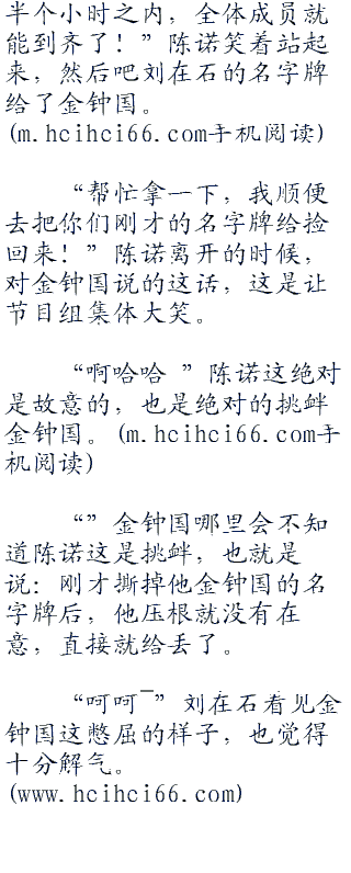 “啪!”陈诺手非常快,速度也非常快,还抓的十分准,一把就抓住了刘在石的名字牌,然后稍微用力一