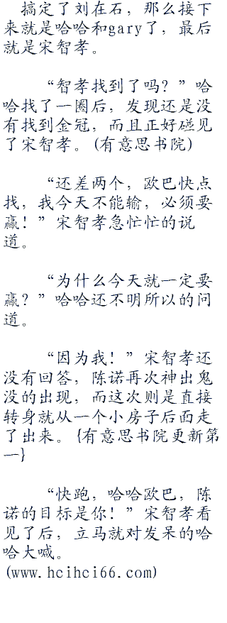 陈诺却是不管,现在的他已经离开了过山车这个游戏项目这里,不断的去寻找刘在石,接下来就是他了。