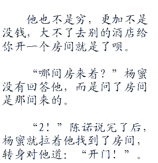 不过他在酒店没有房间的情况下,还带杨蜜上来,这肯定是有办法的了。