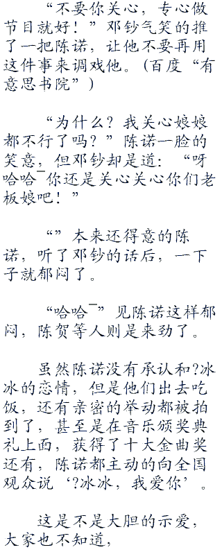 “你羡慕我的还少吗?”baby的羡慕,陈诺一句话就让前者郁闷了。