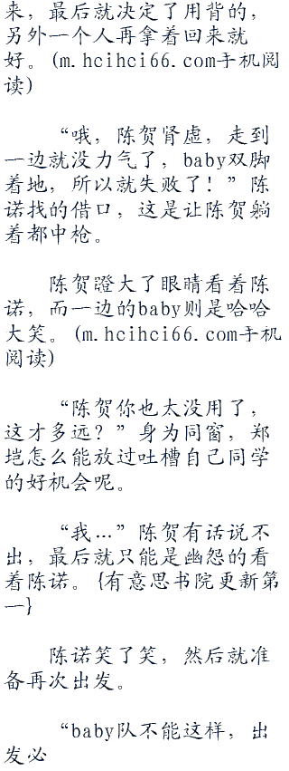 “我不管啦,今天的任务你就背着我完成,我现在不开心坐花轿了!”baby不管了,把陈诺给掰过来后,就直接跳到他的背上。