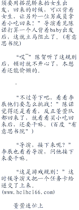 陈诺和baby笑着走回到出发点再次开始,陈贺则是笑的有点腰累了。