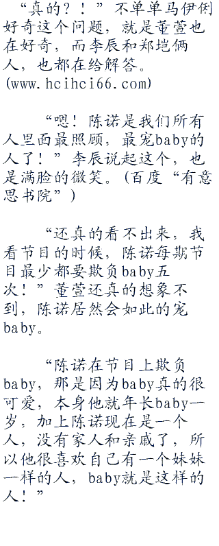 “那为什么陈诺那么喜欢欺负baby?”马伊俐一直好奇这个问题,但就是没有得到答案。