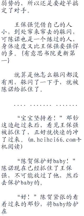 “呵呵~这个不着急,陈诺保护着baby,没有那么容易能搞定的!”邓钞有经验,知道太乱来的话,这根本就不可能。