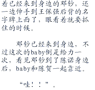 “哈哈~”陈贺和baby过来了后,也觉得十分搞笑,本想着这会是黄队或者是红队来着,可没有想到会是节目组的女作家。