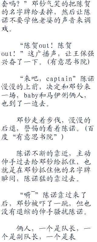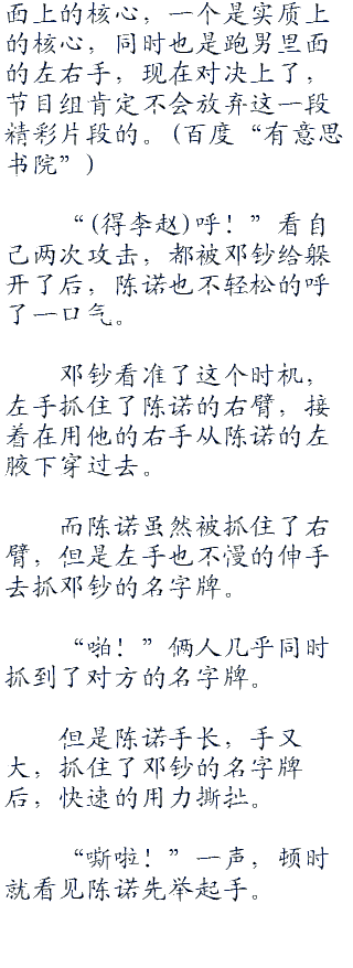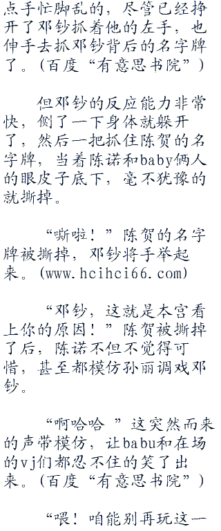 “对不起了!”baby抓住了董萱后,整个人都趴上去,一边要护着自己的名字牌的同时,还要伸手去抓董萱的名字牌。
