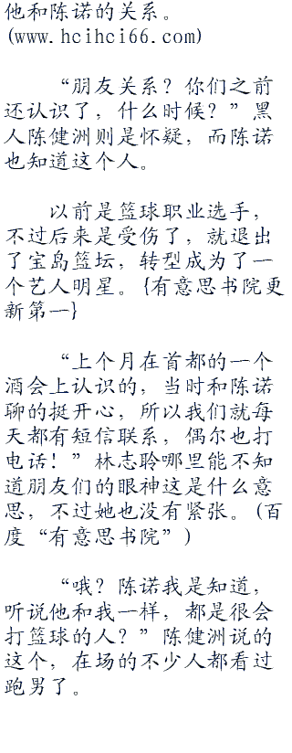 “朋友关系啊,我陈诺本来就认识!”林志聆倒是不觉得有什么,反倒是非常平静的解释