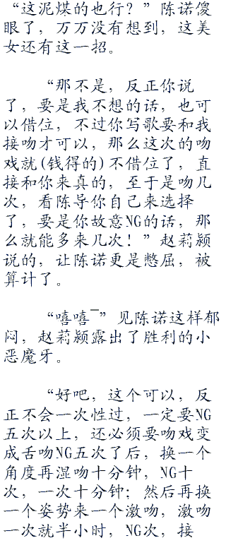 赵莉颍已经知道要怎么去应付这样的陈诺了,总不能每次都被调戏吧,也得为难为难才可以。