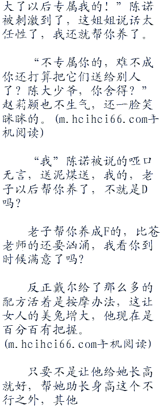 但没有办法,不单单男人喜欢女人的美兔大,她们女人也喜欢自己的美兔大,因为只要足够大了,她们才更加有信心。