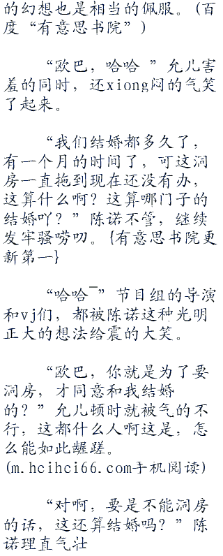 现在居然都无视了允儿的羞愤,自个的开始妄想起来,还露出了一脸陶醉与向往的神色,显然是真的很希望能和允儿洞房。