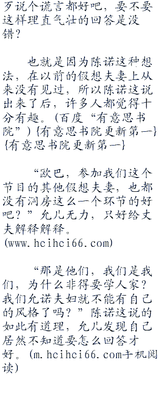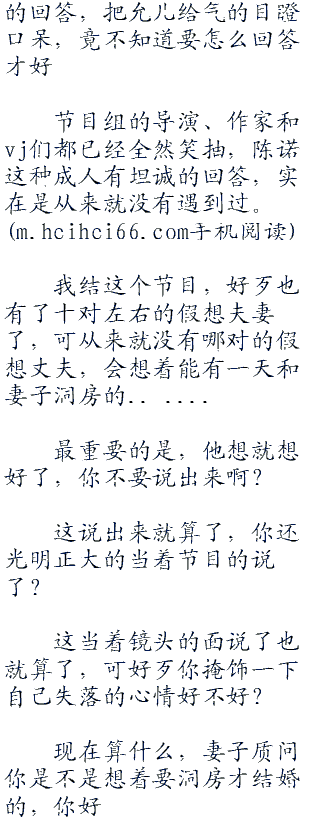 “什么?”听到不是要洞房后,陈诺果然清醒了,然后转身看着假想妻子,好像是在问她:你刚才说了什么?