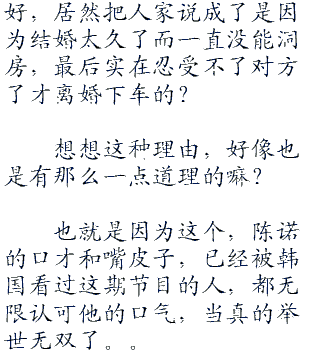 不过想了想,陈诺做节目不都是这样吗,帅气的外表下,总是隐藏着一颗非一般的艺能心。