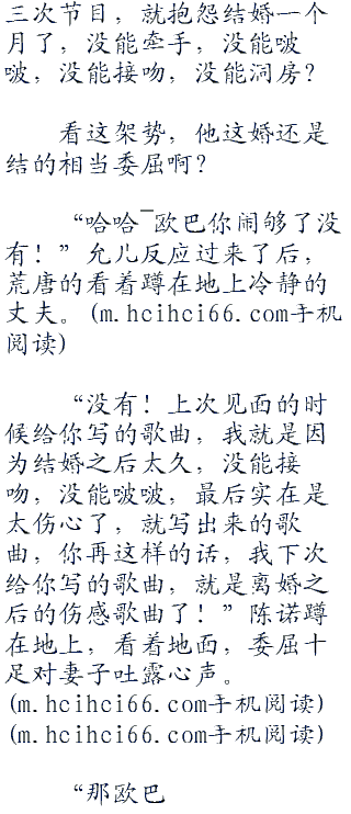 “这也就算了,异国婚和跨国婚姻,我容易我吗,和妻子不在同一个国家,日日夜夜的朝思暮想,这种苦我承受也就算了,结婚到现在,都一个月了,别说是洞房了,我们就是连接吻都没有,这算什么?”陈诺激动的对允儿抱怨,但是他的抱怨,则是让导演组的全体都哈哈大笑。