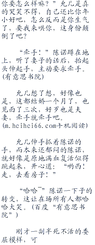 “再说了,我们都结婚一个月了,有哪对夫妻结婚一个月还不能洞房的?不能洞房也就算了,我们还得分居,这算什么结婚?”陈诺一把鼻涕一把泪的对允儿诉苦。