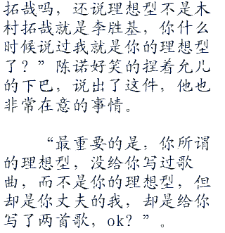 “什么嘛,欧巴,我们少女时代可是每个人都买了你的新专辑的,可你却是只下载我们的歌曲来听而已?”允儿一脸伤心的抱怨陈诺。