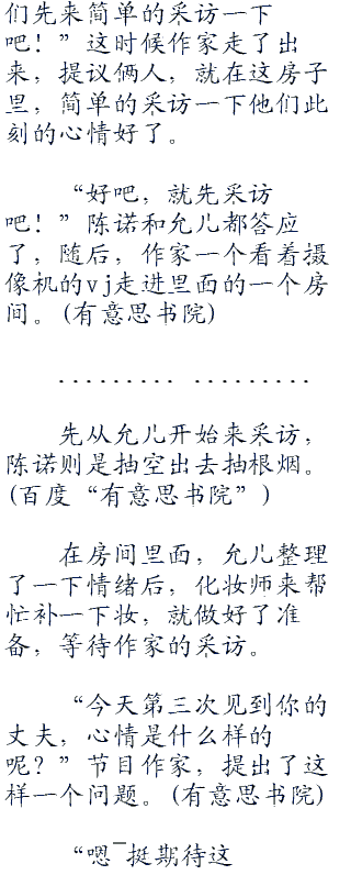 “我一定是疯了,这只是一个假想结婚的节目,我真的是疯了吧?!”允儿不断的在心中呐喊,自己到底是不是疯了?