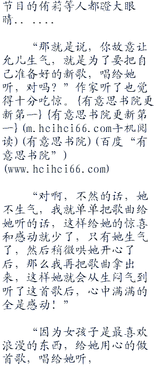 “那么刚才呢,他对于你生气了,却是没有慌张也没有讨好,就故意篡改了一下歌词,你当时是不是很开心?”作家问了后,允儿就一脸的开心。