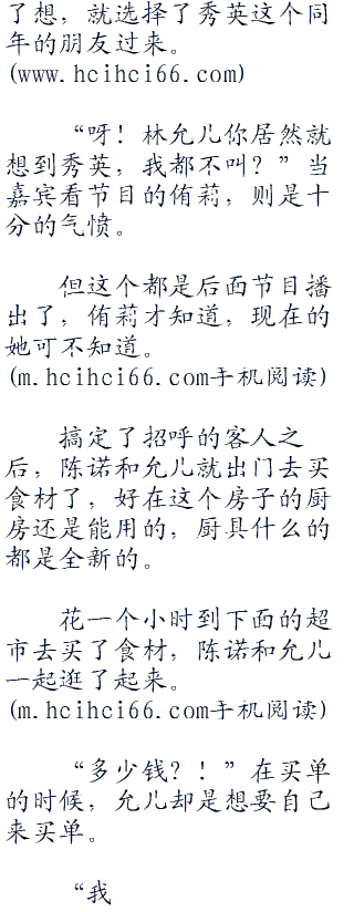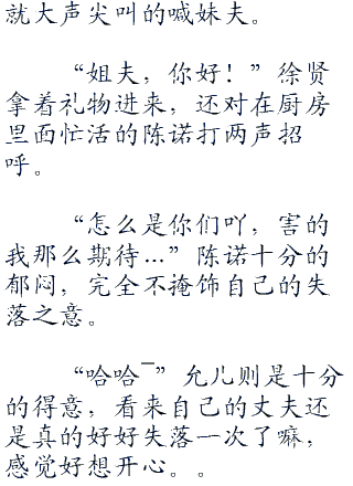 “没事啦,他说上次见过少女时代了,所以不让我请少女时代,而且,等下我叫徐贤过来,姐姐你就说来不来吧,要是你不来的话,我老公说今晚他就不做搬家宴了,得姐姐你来了,他才愿意下厨!”允儿的告状,让陈诺都不好意思了。