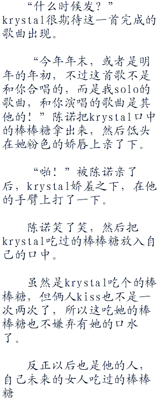 “那就是说...你有给我写歌?”krystal不是很肯定的问陈诺,他话中是不是这个意思。